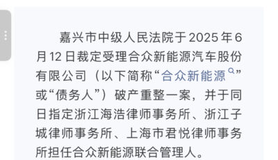6月中旬,《哪吒汽车重整声明》在网络流传,自此伊始,合众新能源重整相关进程便逐步走入公众视野,“重整”一词也成了这家曾跻...