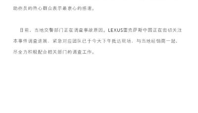 针对近日“雷克萨斯LM撞车后车辆起火人员被困,车门无法打开”一事,雷克萨斯于7月29日发布官方声明,称对此次事故深感痛心...