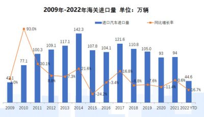 今年1-6月,我国共进口汽车44.6万辆,同比下滑16.7%;进口金额则为1819.3亿元,同比下降2.6%,远低于进口...