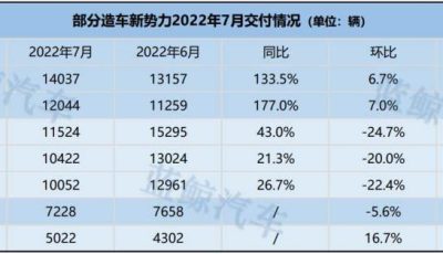 蓝鲸汽车 姚飞 8月1日,造车新势力7月交付成绩单相继出炉,在经历了迅速增长的两个月后,本月新势力方面环比增长均放缓,且...