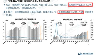 中国汽车工业协会最新数据显示,2025年1-10月,我国新能源汽车出口量首次突破200万辆大关,累计达到201.4万辆,...