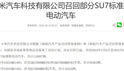 本周,新能源汽车市场有哪些大事发生? 因辅助驾驶存安全隐患,小米汽车召回超11万辆SU7 近日,国家市场监督管理总局发布...